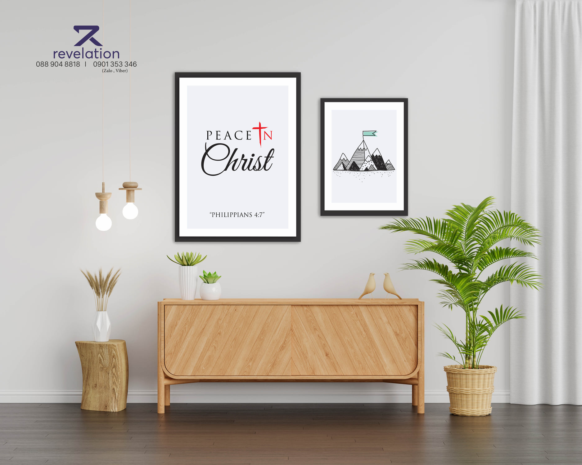 Khung tranh Revelation có 3 màu để khách dễ lựa chọn: Màu trắng, đen và giả gỗ. Chống mối mọt và chịu nhiệt